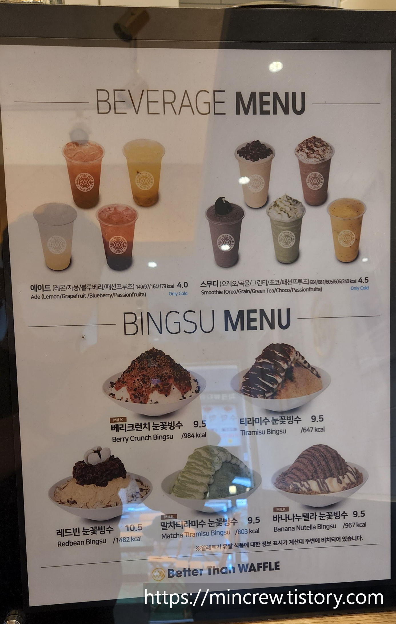이번엔 메뉴 사진만 찍어와서 사실 내부 인테리어나 와플 등 사진을 전혀 못 찍어서 아쉬웠네요