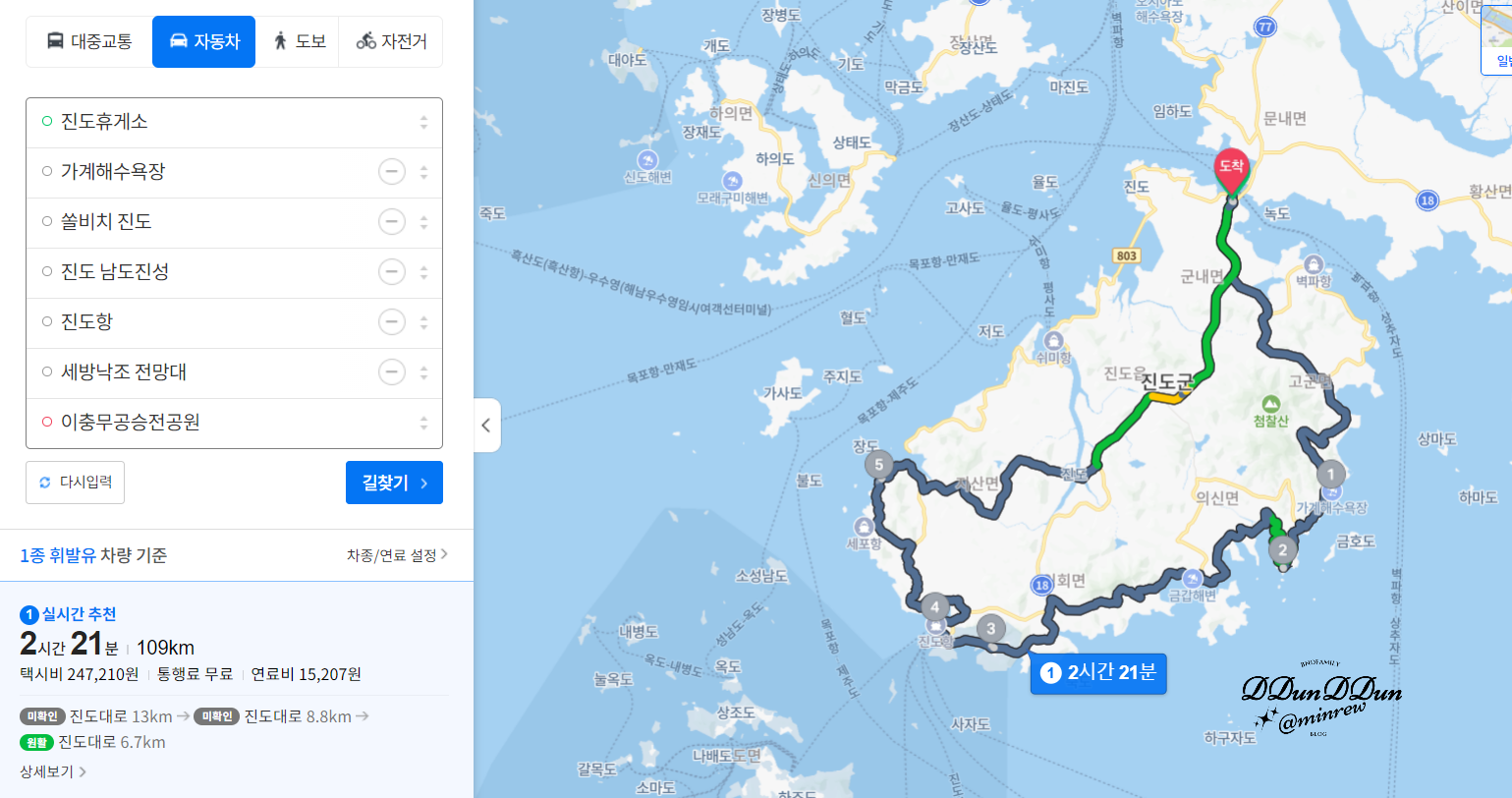 실제로는 낙조가 명품인 진도 여행 추천지로 검색했을 때
